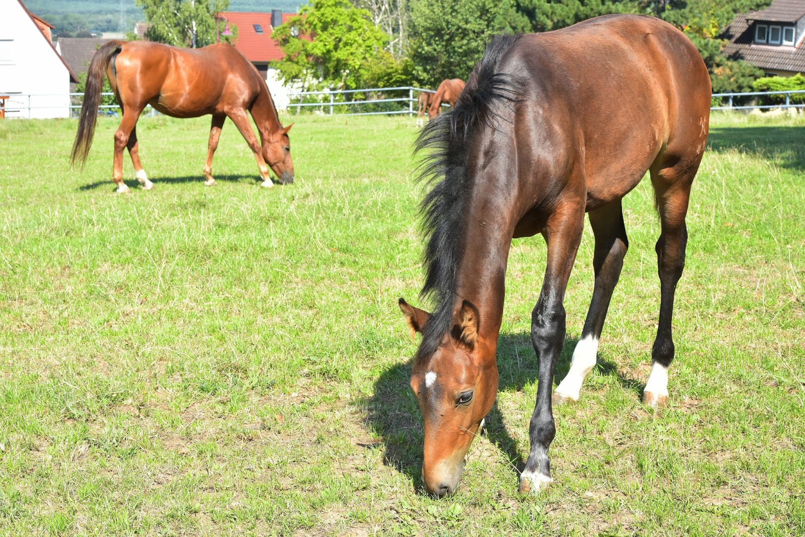 Ferrara is growing up into a beautiful young lady and just received her Hanoverian brand. She is a very well behaved, friendly, calm and relaxed character and we are very much looking forward to the time in three years, when she will return to our stable to be trained and become a trusted sports companion.